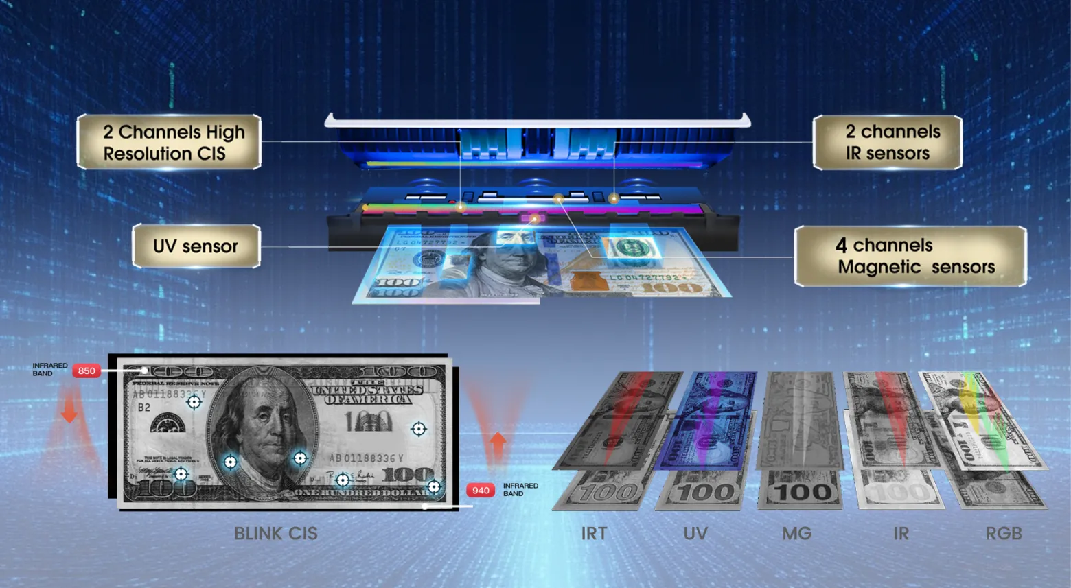 Grâce à ses deux capteurs CIS, la BC-50 lit et affiche les numéros de série de chaque billet, garantissant une traçabilité optimale. Son système avancé de détection de contrefaçons de qualité bancaire combine les technologies UV, MG, MT, IR et Double CIS, assurant une sécurité maximale contre les faux billets.
